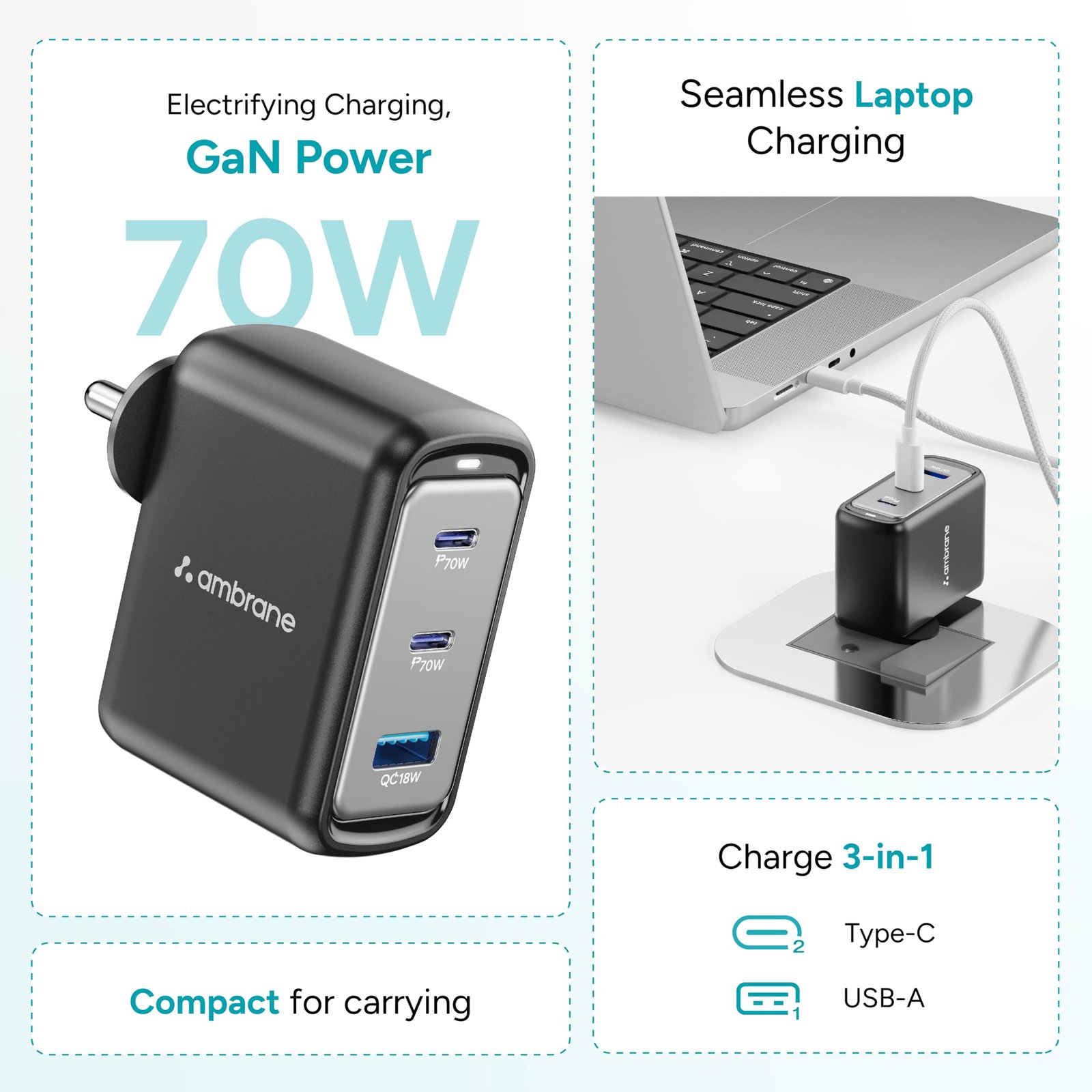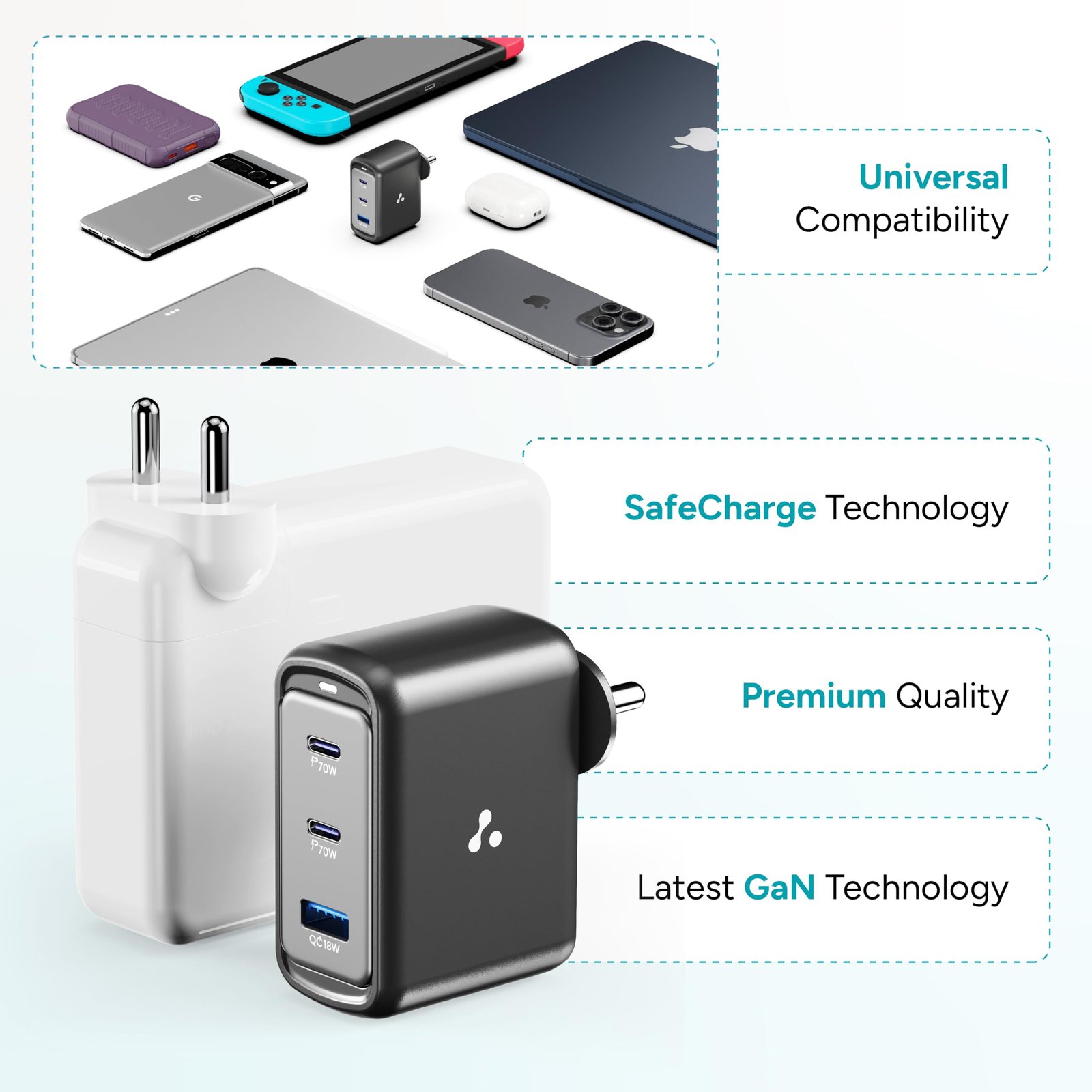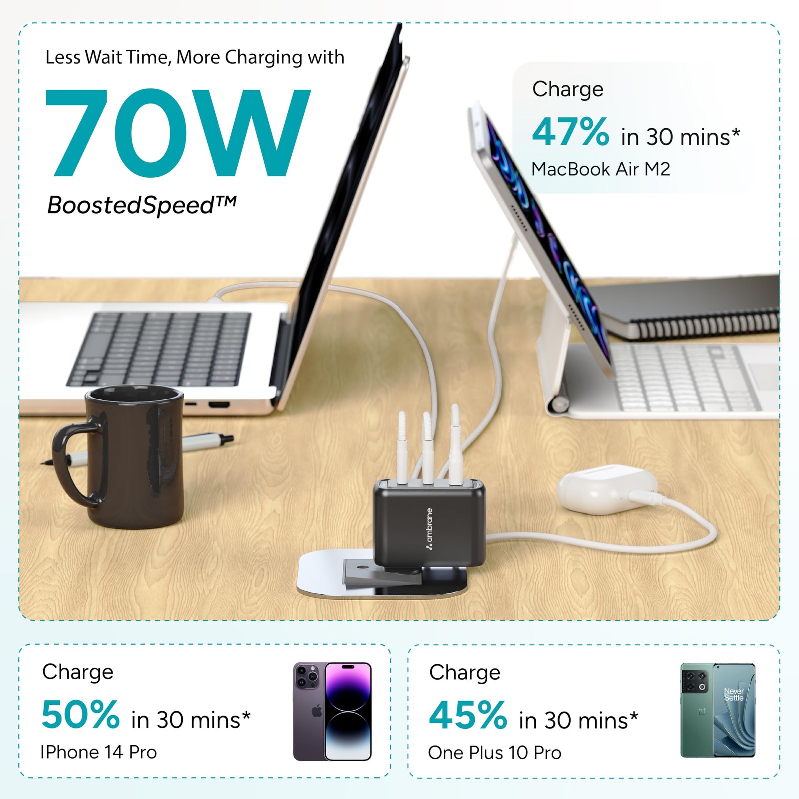 - 70W BoostedSpeed: Enjoy super-fast charging and less charging time with 70W GaN power.