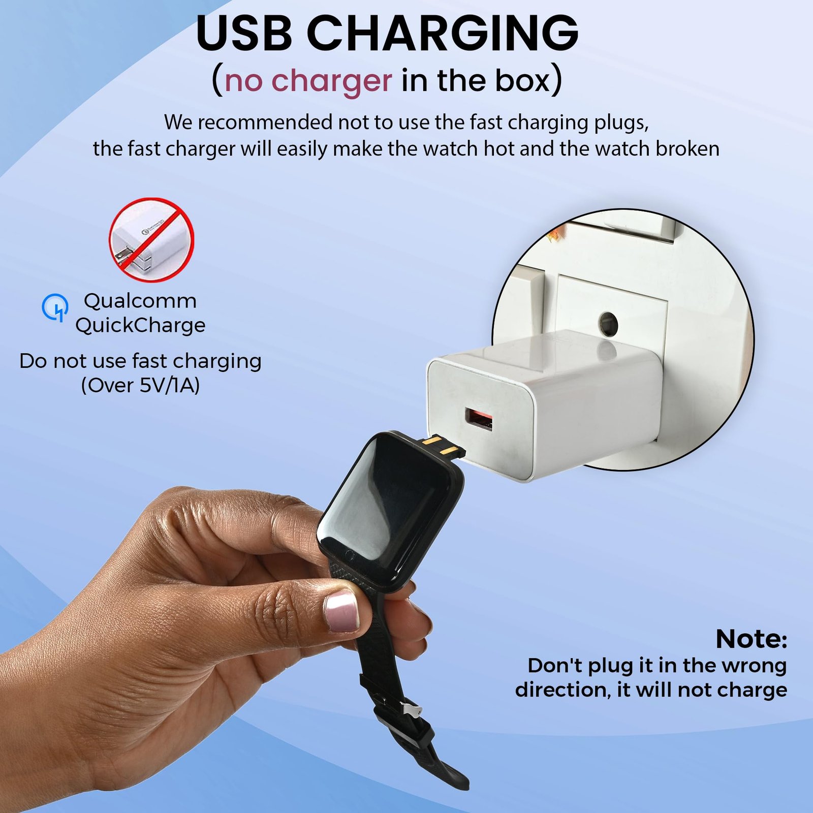 - NOTE -Charger is not available with this watch it has in built usb port remove the strap of watch carefully than u can see usb port which u can attach easily with any laptop,pc,mobile charges to charge. For Any Product Issue Please Contact Us on Customer Care and please Install the App – FIT PRO to use the Smart watch