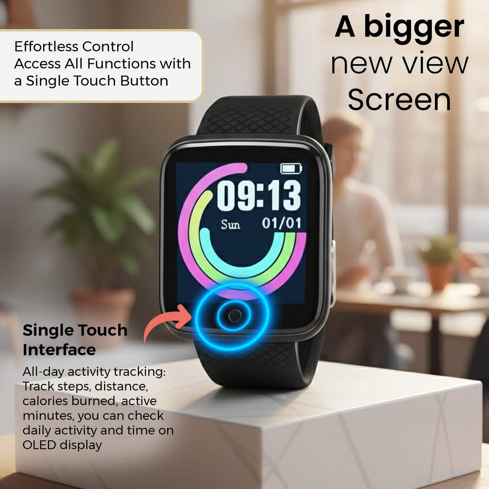 - All-day activity tracking: Track steps, distance, calories burned, active minutes, you can check daily activity and time on OLED display or APP