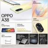 OPPO A38 (Glowing Gold, 4GB RAM, 128GB Storage) | 5000 mAh Battery and 33W SUPERVOOC | 6.56″ HD 90Hz Waterdrop Display | 50MP Rear AI Camera with No Cost EMI/Additional Exchange Offers