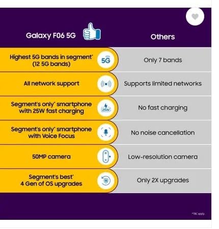 Details: Say hello to the Samsung Galaxy F06 5G in Bahama Blue — a perfect blend of style, speed, and everyday reliability. Powered by 5G connectivity, this phone keeps you ahead with faster downloads, smoother streaming, and lag-free browsing. With 4GB of RAM and 128GB of internal storage, it offers a responsive experience for daily tasks while giving you plenty of room for apps, photos, and videos. The Bahama Blue finish adds a refreshing splash of color, making the phone as fun to look at as it is to use. Whether you’re capturing memories with its capable camera, enjoying videos on its immersive display, or staying connected all day with its long-lasting battery, the Galaxy F06 is built to handle it all with ease. Ideal for those who want reliable 5G performance without stretching the budget, this device is smart, stylish, and ready for whatever comes next.