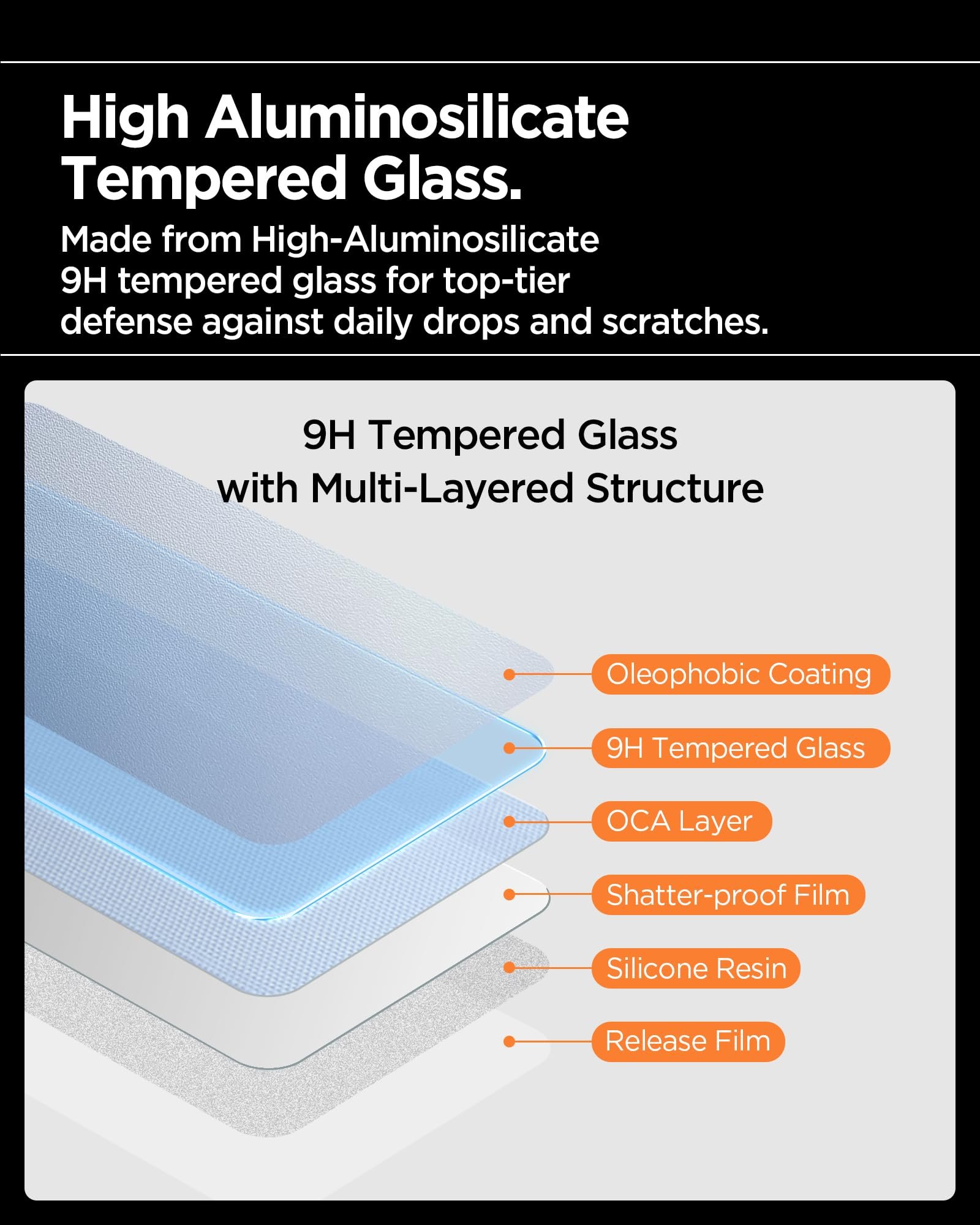 • [High Alumina Silicate] Made from High-Alumina Silicate tempered glass for top-tier defense against daily drops and scratches