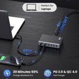 - 【High-Speed USB-C PD and USB-A Fast Charging】: USB-C ports support Power Delivery 3.0 for rapid charging at 100W, 65W X 2 and 20W . USB-A ports deliver QC 18W fast charging for compatible smartphones and accessories, ensuring quick top-ups for all devices.